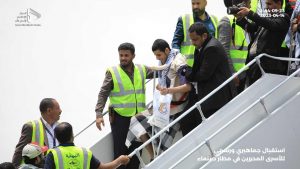 واستقبلت جموعٌ كبيرةٌ من أبناء الشعب اليمني الأسرى المحرّرين، بحفاوةٍ كبيرة، وسط أجواء مؤثرة شهدها مطار صنعاء أثناء لقاء الأسرى بعائلاتهم.