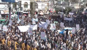 ورفع المشاركون في المسيرة التي حضرها حشد كبير من القيادات السياسية والمدنية والعسكرية هتافات الحرية ورفض القرارات الأمريكية وتستنكر التصنيف الأخير بحق طليعة الشعب اليمني أنصار الله في مواجهة العدوان والحصار الاقتصادي الذي تنتهجه أمريكا ودول العدوان السعودي بحق الشعب اليمني.