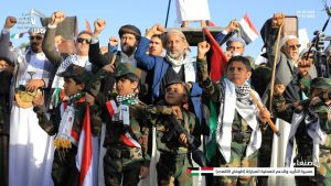 أما المواطن علي حسين الأشقف فيقول: “من هذه الساحة نطالب بفتح الحدود بيننا وبين السعوديّة لنعبر نحو فلسطين، حينها سيشهد العالم مجدّدًا منهم شعب المدد، ومنهم شعب الإيمان والحكمة، وسيعرف الجميع بأسنا الشديد الذي أنعم الله به علينا ووصفنا به، والذي سنسخره حتماً لتحرير بيت الله الحرام كما تحرّر أول مرة، على أيادي المجاهدين اليمانيين الفاتحين”.