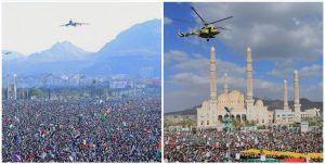 لبَّى اليمانيون، أمس، نداءَ السيد القائد عبد الملك بدر الدين الحوثي –يحفظه الله- وخرجوا في أكبرَ مسيرة تضامنية مع الشعب الفلسطيني في ميدان السبعين بالعاصمة اليمنية صنعاء، مؤكّـدين تضامنهم مع ما يتعرض له قطاع غزة من حرب إبادة، ومجددين وقوفهم خلف السيد القائد في أية خيارات يتخذها في المعركة المرتقبة مع العدوّ الأمريكي.