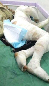 وأضاف الشدادي “وبعد طلوع الضوء أقبل أولاد صهري مختار الطفلان عمر (10 أعوام) وعارف (7 أعوام) إلى بوفية أبيهم الذي استمر في نومه دون إرادة، ففتح لهم الباب بعد أن طرقاه لدقائق، فوجد البوتجاز قد انطفأ، إلا أنه وأولاده لم يلاحظوا أية رائحة للغاز، فعاود الأب إشعال البوتجاز، ما أدى إلى نشوب حريق هائل داخل البوفية، نجم عنه إصابة الأب وطفليه بحروق بليغة نقلوا على إثرها إلى المستشفى الجمهوري بصنعاء.