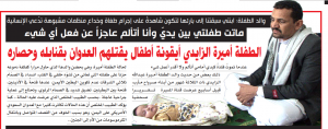 الطفلة أميرة الزايدي أيقونة أطفال يقتلهم العدوان بقنابله وحصاره