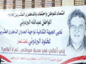 أحيت الجبهة الثقافية لمواجهة العدوان، أمس السبت، بصنعاء الذكرى العشرين لرحيل الشاعر عبدالله البردوني تحت شعار ”إني أغالي في محبة موطني.. لم لا أغالي“.