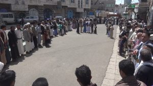 نظّم أبناء ووجهاء ومشايخ مديريات أمانة العاصمة، أمس عقب صلاة الجمعة، وقفاتٍ احتجاجيةً؛ للتنديد بجرائم وخروقات العدوان تحت عنوان ”21 سبتمبر.. ثورة حرية واستقلال”.