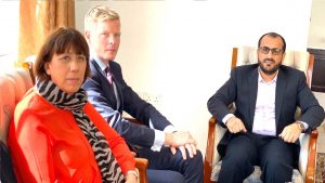 التقى رئيسُ الوفد الوطني، أمس السبت، سفيرَ الاتّحاد الأوروبي وسفيرة مملكة هولندا لدى اليمن، وذلك في سياق جولة الوفد الخارجية للتعريف بقضية اليمن الذي يتعرّض منذُ نحو خمسة أعوام للعدوان والحصار السعودي الأمريكي.