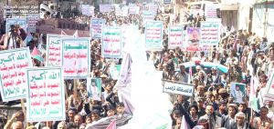وعبّر بيان صادر عن المسيرة عن الرفض القاطع للصفقة الأمريكية.. مؤكّـداً وقوفَ الشعب اليمني إلى جانب الشعب الفلسطيني وحقه المشروع في مقاومة الاحتلال الصهيوني حتى تحرير كامل أراضيه المغتصبة.
