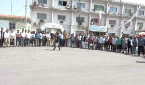 وقفة احتجاجية لعمال مؤسّسة المياه بالحديدة رفضاً لصفقة ترمب