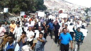 مظاهرة شعبيّة غاضبة في عدن تطالب برحيل الاحتلال وحكومة الفار هادي