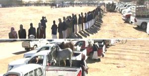 وأثناء تسيير القافلة التي احتوت على أعدادٍ كبيرة من الأبقار والمواشي وكميات من المواد الغذائية، نظّم أبناءُ المنطقة وقفةً قبليةً مسلحةً أكّـدوا فيها رفضَهم لصفقة ترمب وتأييدهم لعملية البنيان المرصوص وعمليات الردع الثالثة، التي نفّـذها أبطالُ الجيش واللجان الشعبيّة في العمق السعودي، ردًّا على جرائمه التي يرتكبها بحقِّ أبناء الشعب اليمني.