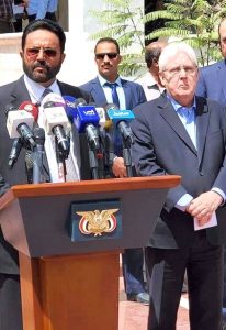 وفي السياق نفسه، ردَّ نائب وزير الخارجية بحكومة الإنقاذ، حسين العزي، على تصريحات غريفيث قائلاً: إن: “التهدئة الحقيقية هي تلك التهدئة التي تبني الثقة ويلمس أثرها الناس وتقود لأجواء داعمة للحل الشامل وهذا النوع من التهدئة يستدعي فتح المطار ورفع الحصار عن الميناء والدريهمي وصرف المرتبات وتمكين الشعب من ثرواته النفطية والغازية باعتبارها لكل اليمنيين وليست خَاصَّة فقط بمنتسبي تنظيم الإخوان”.
