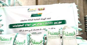 إلى ذلك وتحت شعار “الزكاة في مصارفها”، دشّنت الهيئة العامة للزكاة، أمس الثلاثاء، بصنعاء، توزيع ثلاثة آلاف وَ650 قدحاً من البقوليات المتنوعة على أسر المرابطين في الجبهات، وذلك بالتنسيق مع مؤسّسة يمن ثبات التنموية.
