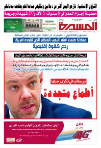 pdfصحيفة المسيرة يوم الإثنين العدد1533 في نوفمبر 27, 2022 مشاركة pdfصحيفة المسيرة يوم الإثنين العدد1533 مشاركة FacebookTwitterWhatsAppالبريد الإلكترونيTelegramطباعة