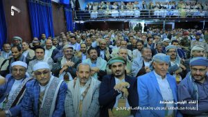 وقال “نشيدُ بأبناء محافظة ذمار ودورِهم في دعم الجبهات وتقديمِ النصيب الأكبر من التضحية، من حَيثُ أعداد الشهداء، كما نشيد بأبناء محافظة إب في رفد الجبهات بالغالي والنفيس والمحافظة على النسيج الاجتماعي وعلى الوضع الداخلي وثبات المجتمع”، فيما أشاد بأبناء محافظة تعز على الدور البطولي والثباتِ الكبير في مواجهة العدوان رغم الزحوف الكبيرة والمتكرّرة، وقدَّمَ الإشادةَ ذاتَها إلى قيادات وأبناء محافظتَي الضالع ولحج في الثبات وتحرير مناطق واسعة وطرد الغازي منها.
