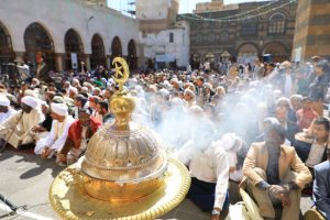 وأشَارَ إلى أن إيمان أهل اليمن بالرسول الكريم كان من قبل بعثته كما جاء في الاثر، وأن الله بعث أهل اليمن ليكونوا حاضنة للإسلام من خلال الأوس والخزرج، مُضيفاً “ولهذا لا عجب حين وقع الرسول ساجداً فرحاً وشكراً لله، موضحًا أن هذه الفرحة التي عبر عنها رسول الله قائلاً: “السلام على همدان وكرّرها ثلاثا”، هي ما نحتفل بها اليوم.