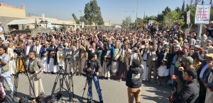 نظمت مديريةُ شعوب بأمانة العاصمة، أمس السبت، فعاليةً جماهيريةً ووقفة حاشدة أمام السفارة الأمريكية بصنعاء؛ إحياءً لذكرى 11 فبراير يوم خروج قوات المارينز الأمريكي من صنعاء.